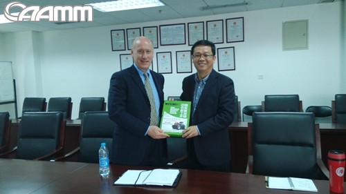 2014年5月5日,我协会执行副会长兼秘书长洪暹国接待了美国设备制造商协会AEM副总裁查理先生的到访,综合业务部副主任林明参加了此次会谈