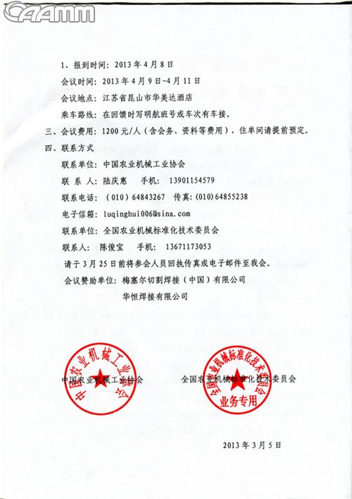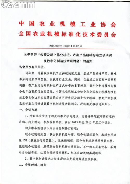 关于召开“收获及场上作业机械、农副产品机械标准立项研讨及数字化制造技术研讨会”的通知