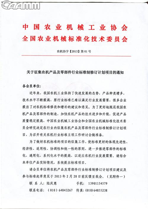 关于征集农机产品及零部件行业标准制修订计划项目的通知