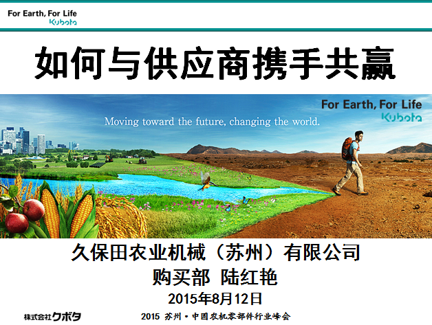 介绍了久保田公司采购部门的运营情况、合作方针以及未来的发展计划,重点从“品质、成本、供应力”三个方面分享了与供应商携手并进、合作共赢的模式与经验。 [详细]