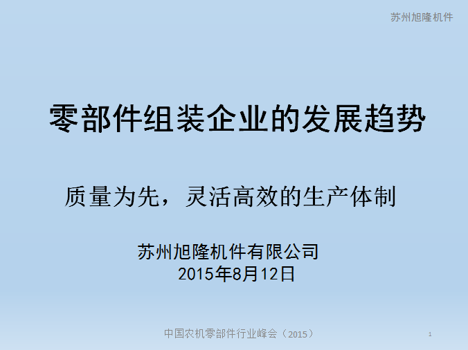 2015苏州·中国农机零部件行业峰会